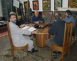 Зураб Константинович, ваша работа - скульптура, установленная перед зданием ООН в Нью-Йорке в 1990 году, - называется "Добро побеждает зло". За минувшие 13 лет ваше мировоззрение не претерпело изменений? Добро побеждает, победит зло? Зураб Церетели: Да, это не случайно я создал. Когда списали "Першинги" и "СС-20", я все время об этом думал, кто имеет право списать достижение, которое наука придумала, наука создала? Долго я искал формулу, и, наконец, решил, что это может быть только святой. Поэтому родилась идея Святого Георгия, это спаситель, это покровитель. В России воссоздан Храм Христа Спасителя. В каждом губернии, в каждом уголке - часовня. Всегда думаю, что это Георгий Победоносец помог, и Бог смотрит и помогает. Карэн Агамиров: Вопросы Зурабу Церетели задают журналисты Франк Браун, корреспондент американского Информационного агентства религиозных новостей, и Ольга Свистунова, обозреватель информационного телеграфного агентства России "ИТАР-ТАСС". Ведет программу Карэн Агамиров. Вначале у нас принято зачитывать краткую биографию гостя. Но с вашей биографией дело обстоит очень сложно. У вас она такая большая, и столько у вас регалий: Я их кратко все-таки должен перечислить, чтобы напомнить слушателям: Герой Социалистического Труда, Народный художник Российской Федерации, Народный художник Грузии, Народный художник СССР, лауреат Ленинской премии, дважды лауреат Государственной премии, лауреат Государственной премии России, профессор Брокпортского университета изящных искусств (штат Нью-Йорк, США), лауреат премии Пикассо, кавалер российских орденов "За заслуги перед Отечеством" III степени" и "Дружбы народов", действительный член Академии творчества СССР. Зураб Церетели первым из россиян 19 июня 2002 года принят в "Пантеон бессмертных" (так называют Академию изящных искусств Франции, основанную еще в 1648 году кардиналом Ришелье). Можно еще что-нибудь добавить? Зураб Церетели: Достаточно. Достаточно. Карэн Агамиров: Профессия и призвание рано проявили себя. Общение с крупнейшими мастерами утвердило Зураба Церетели в желании стать художником. В 1958 году при выпуске из Тбилисской академии его тяга к эксперименту, к стремлению найти новые средства выражения привели художника к конфликту с официальным направлением живописи. Его дипломная работа "Песнь о Тбилиси", тем не менее, не была допущена до защиты из-за элементов условности. Я буду прерывать биографию, данные из биографии, вопросами к вам. В чем был все-таки конфликт? В те годы конфликтовать с властями, в 1958 году, было очень опасно. Зураб Церетели: Тбилисская академия была тогда сильная академия, потому что там преподавали выдающиеся педагоги. Это люди, которые вернулись из-за границы, и запретили им жить в столице, отправили на Кавказ. Грузия сохранила их, дала возможность им вести педагогическую жизнь. И это очень хорошую роль сыграло для развития искусства. Когда проходил выездной президиум академии художеств (руководил Серов), они посмотрели все дипломные работы. И вы хорошо помните, что Сарьян иногда поднимался, иногда падал, зависть к нему мешала, иногда что-то еще: И как раз это тот период, когда он получил "героя", "героем" стал. И вот когда пришли, посмотрели все дипломные работы, и Сарьян громко сказал, что вот настоящий художник, там хорошие слова, хорошую характеристику дал. Ну, Серов 