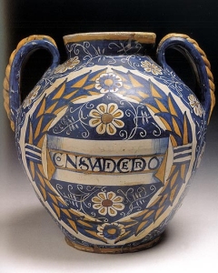 Давид Сарксисян: Есть изразцы, которые клались на поверхность здания и на поверхность печки. Здесь представлено разнородное собрание, но в нем все вещи древние. Первый экспонат, самый ранний датируется XIII веком, последний - XIX веком. Есть вещи бытового содержания - кувшины обычные, или сосуды для специй, есть блюда. Есть вещи очень дорогие по работе в то время, а есть вещи совсем уже бытовые, но за счет древности они все в цене сравнялись. Вся коллекция в целом стоит несколько миллионов долларов. Лиля Пальвелева: Когда посетитель входит на выставку, наверное, первое, что он замечает, это большое панно из керамических прямоугольников. Давид Саркисян: Это изображение Сципиона. Оно было на поверхности здания. Лиля Пальвелева: Средневековые мастера увлекались античностью. Нo на выставке "Золотые века майолики" можно встретить не одного только Сципиона, картинно изогнутого римского воина в доспехах. Бесспорный шедевр - блюдо с мифологической сценой из Урбино. Говорят - расписано под влиянием Рафаэля. Еще на блюдах и кувшинах рисовали обстоятельные пейзажи, покрывали свои изделия буйным растительным орнаментом, в который нередко вплетали животных. Если внимательно приглядеться, можно заметить зайца или птицу. Порой это сине-белая роспись, чаще - многоцветная. И вот что замечательно: спустя века, краски на покрытых глазурью вещах практически не меняются. Откуда родом все эти экспонаты? Чрезвычайный и полномочный посол Италии в России Джанфранко Факко Бонетти сообщает. Джанфранко Факко Бонетти: Это не только изделия из Италии. Но если мы говорим об итальянских изделиях, то это, в основном, изделия, которые были произведены в Центральной Италии. Если говорить об изделиях, которые не итальянского производства, то это испанского производства (юга Испании) и из города Изник в Турции. Лиля Пальвелева: Вещи, которые не из Италии, они, тем не менее, бытовали у итальянцев? Джанфранко Факко Бонетти: Конечно, это все предметы, которые использовались в быту, в том числе аристократическими семьями. Среди наиболее интересных экспонатов есть вазы - это аптекарские сосуды вертикальной формы. Соответственно, все эти вазы использовались в быту в тех целях, для которых они были и сделаны. Лиля Пальвелева: В них хранились лекарства или они использовались для чего-то другого? Джанфранко Факко Бонетти: Даже если мы сейчас находимся в аптеке Ивана Грозного, я вам не могу сказать с уверенность, потому что я не специалист-фармацевт. Но я подозреваю, что, скорее всего, здесь хранились травы, эссенции из трав. Лиля Пальвелева: Занятное сближение: упомянутые Джанфранко Бонетти аптекарские сосуды, вместе со всеми прочими экспонатами выставки, разместили в той части Музея архитектуры, что расположена в здании XVII столетия. Здесь был Аптекарский приказ, подчеркивает Давид Саркисян. Давид Саркисян: Мы выставляли уже из того же Палаццо Барберини муравское стекло XV века. К нам приехал тот самый сосуд, который натурщик Караваджо держал в руке, когда тот писал картину "Вакх". Этот сосуд стоял в нашем Аптекарском приказе, построенном царем Алексеем для себя в качестве аптеки. Он сюда ходил лечиться. На задворках был огород, где росли травы. Так что, это совершенно замечательное помещение, совершенно фантастическая коллекция. Мы постарались выставить ее занятно. Не скучно - кажду
